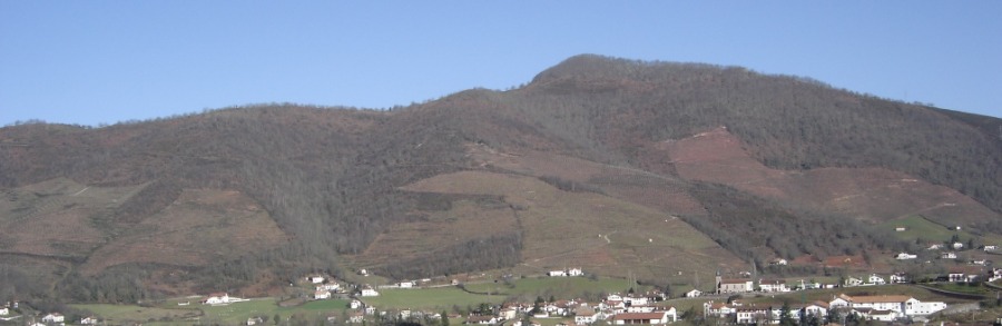 Nous cultivons notre vigne en terrasses, accrochée aux pentes abruptes de la montagne Arradoy à Ispoure, sur les hauteurs de Saint Jean Pied de Port. Notre mode de culture demande beaucoup de travail manuel, méthode en totale harmonie avec notre soucis de la protection de notre environnement afin de préserver notre biodiversité. Nous n’utilisons pas de désherbants, ni d’insecticides.